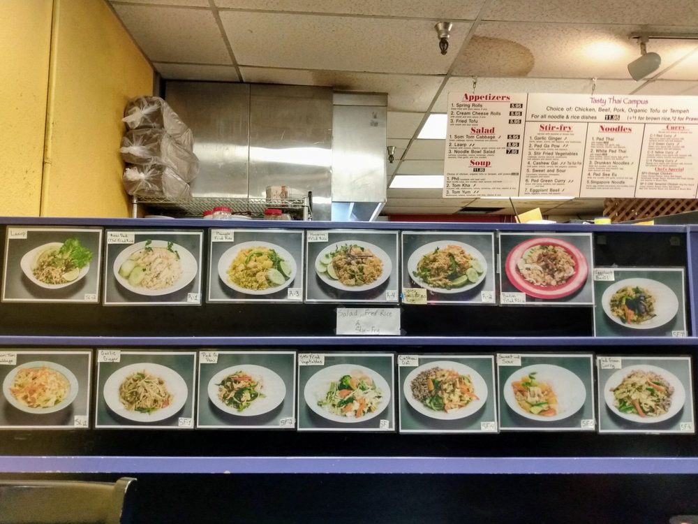From the moment you step through the doors, you're greeted by the fragrant aromas of freshly prepared dishes and the inviting ambiance of moderate noise. Whether you're looking for a quick lunch break between classes or a cozy dinner with friends, Tasty Thai Campus has you covered. They offer a variety of utilities to ensure every visit is enjoyable: delivery, takeout, outdoor seating, and even catering for larger groups.